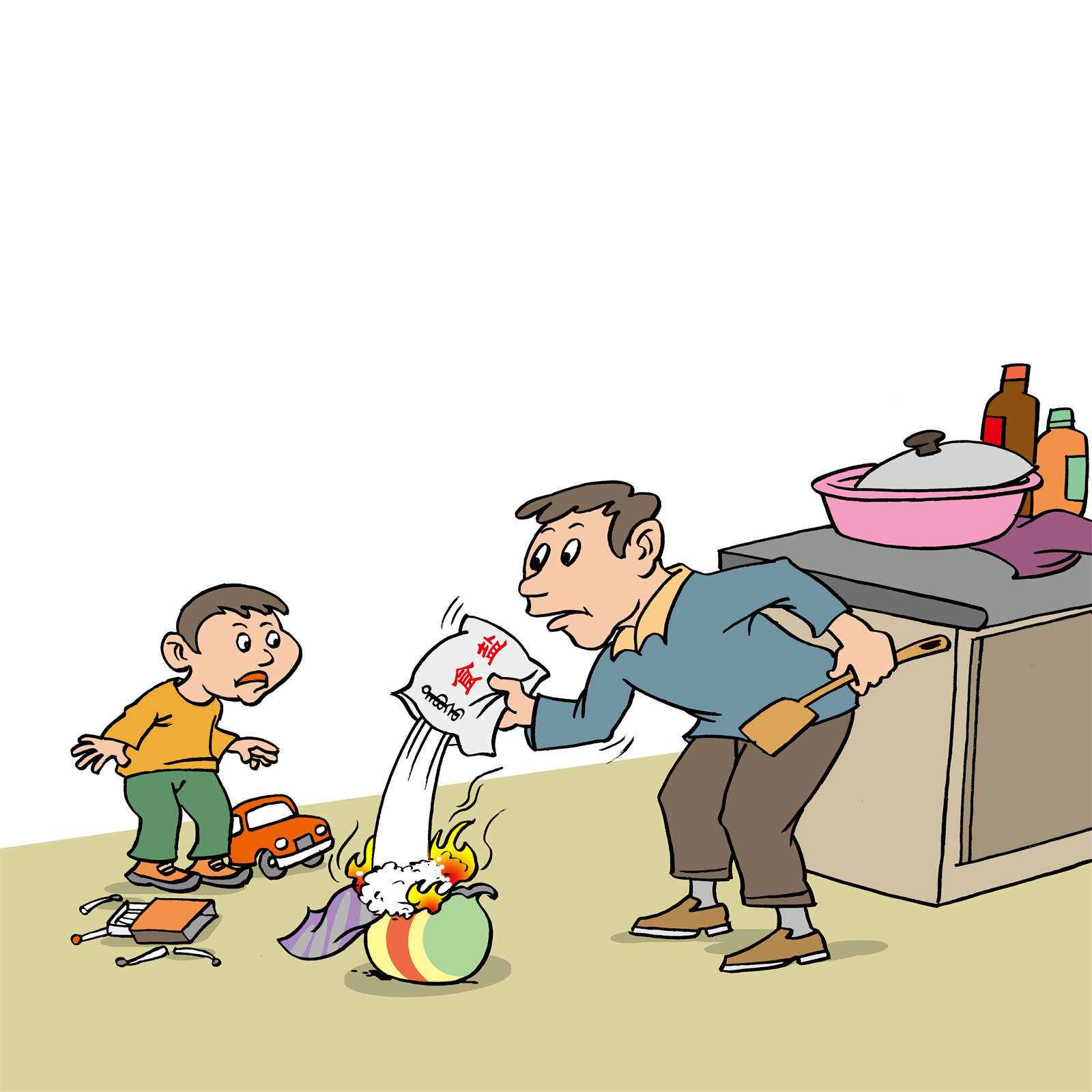 食鹽在高溫下吸熱快,能破壞火苗的形態,稀釋燃燒區的氧氣濃度,能使火很快熄滅。(作者:巴·畢力格)