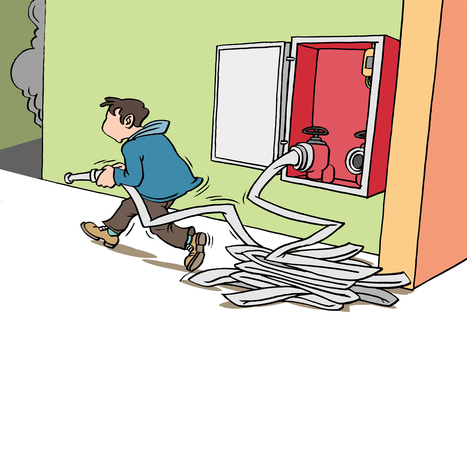 如遇火災,請正確使用墻壁消防栓撲救初期火災。(作者:巴·畢力格)