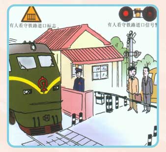 行人和車輛,通過有人看守的鐵路道口時,應按照交通信號和管理人員的指揮通行。