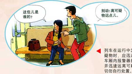 列車在運行中發現可疑物時,應迅速利用車廂內報警器報警,并迅速遠離可疑物,切勿自行處理。