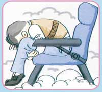 孕婦乘坐飛機時,安全帶應系在大腿根部。 當飛機發生異常時,乘客應聽從指揮雙臂交叉,頭俯下緊貼在交叉的雙臂上,雙腳平放,用力踏地。
