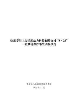 上海鎂源動力科技有限公司“8·28”一般粉塵爆炸事故調查報告