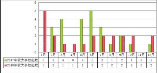 2018年,全國共發生房屋市政工程生產安全較大及以上事故22起、死亡87人,與上年相比,事故起數減少1起、下降4.3%,死亡人數減少3人、下降3.3%。全國15個地區發生較大及以上事故。其中,廣東發生重大事故1起、死亡12人,較大事故2起、死亡7人;安徽發生較大事故2起、死亡10人;山東發生較大事故2起、死亡9人;上海、廣西、貴州各發生較大事故2起、死亡6人;江西、河南、海南、寧夏各發生較大事故1起、死亡4人;天津、河北、湖北、四川、陜西各發生較大事故1起、死亡3人。廣東省佛山市軌道交通2號線一期工程“2·7”透水坍塌重大事故,造成嚴重人員傷亡和財產損失,教訓極其慘痛。