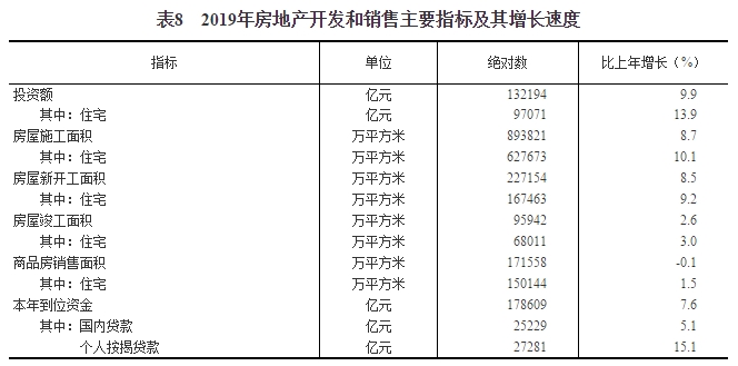 全年房地產開發投資132194億元,比上年增長9.9%。其中住宅投資97071億元,增長13.9%;辦公樓投資6163億元,增長2.8%;商業營業用房投資13226億元,下降6.7%。