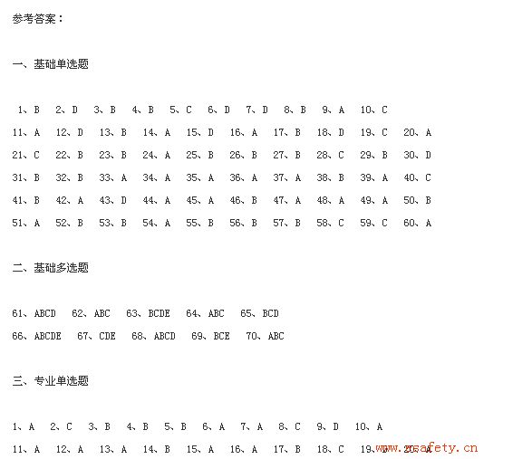 三、 專業單選題(20 × 1分 = 20分)(危險化學品專業,其他專業略)