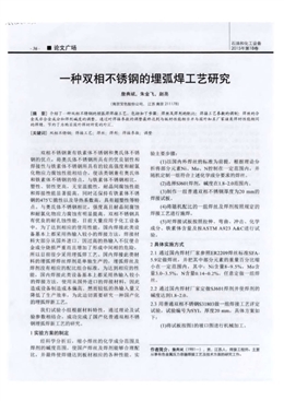 一種雙相不銹鋼的埋弧焊工藝研究