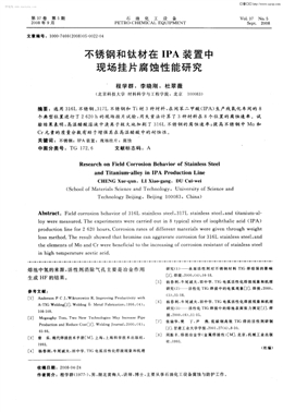 不銹鋼和鈦材在IPA裝置中現場掛片腐蝕性能研究