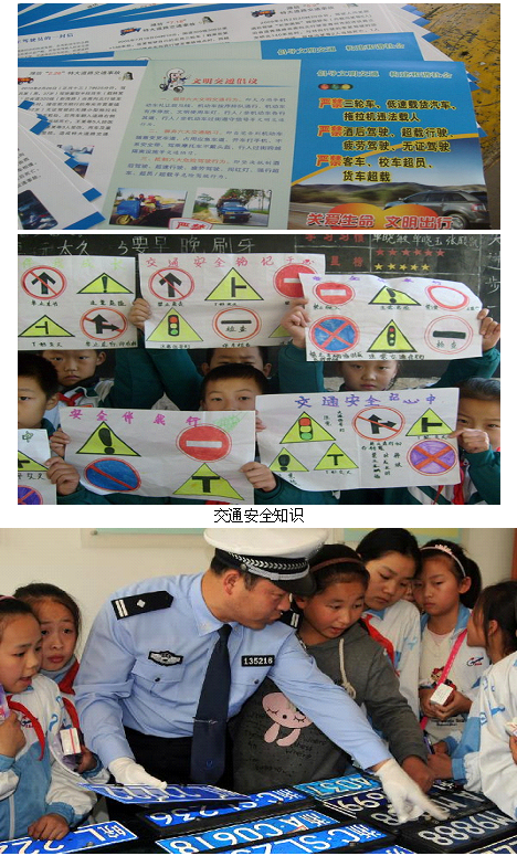 一名交警正在向小學(xué)生們介紹如何識別機(jī)動車假牌