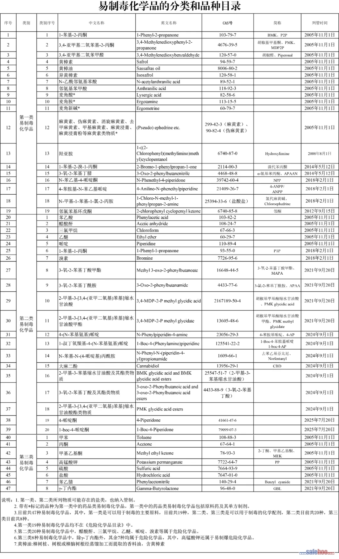 易制毒化學品的分類和品種目錄