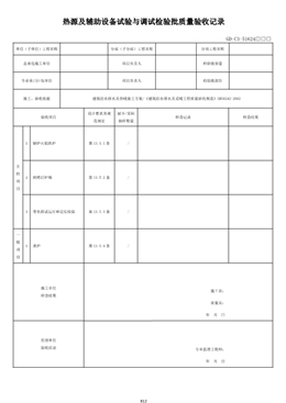 熱源及輔助設備試驗與調試檢驗批質量驗收記錄