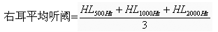 雙耳平均聽閾=(較好耳平均聽閾(dB)×4+較差耳平均聽閾(dB)×1)/5