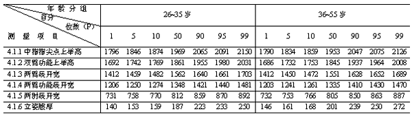 5.2 立姿時要求自然挺胸直立,坐姿時要求端坐。如果用于其他立、坐姿勢的設計(例如放松的坐姿)需增加適當修正值。