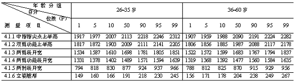 4.1 立姿人體尺寸(見圖1、表1、表2)。