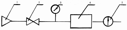 1—?dú)庠矗?/SPAN>2—開關(guān);3—壓力表;4—被測裝置;5—?dú)怏w流量計