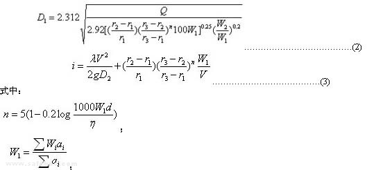 9.1 輸漿管路的管徑和水頭損失值按經(jīng)驗式(2)、式(3)計算: