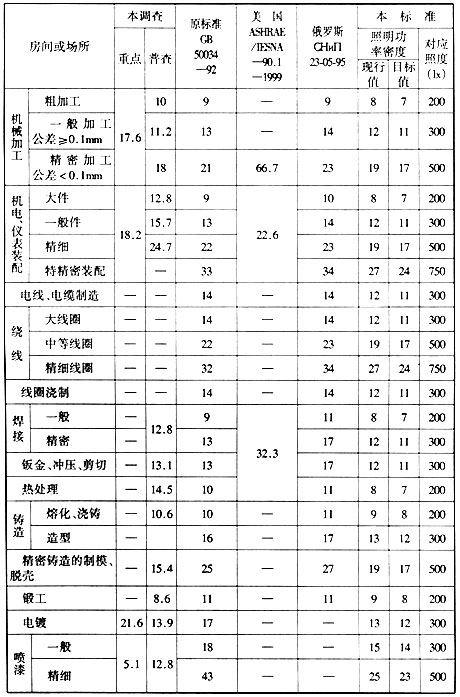 注:*宜用混合照明。