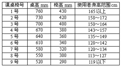 a)在抽樣教室中,測量教室內在座學生身高及相應課椅高度,被測課桌椅號數在使用者身高范圍內,則分配符合。(評價時用表3)