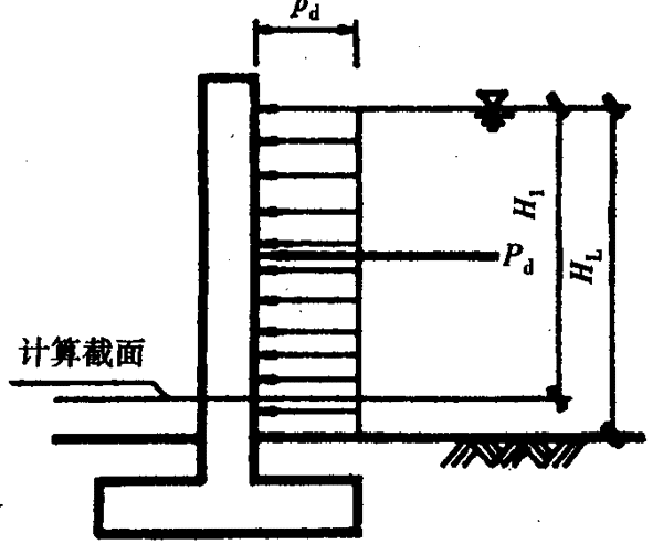 式中Pd——計(jì)算截面以上每米堤長(zhǎng)動(dòng)液壓力合力(kN/m);