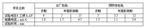 4.2.1電絕緣皮鞋和電絕緣布面鞋:當泄漏電流為0.3mA/kV時,應滿足表4的要求。